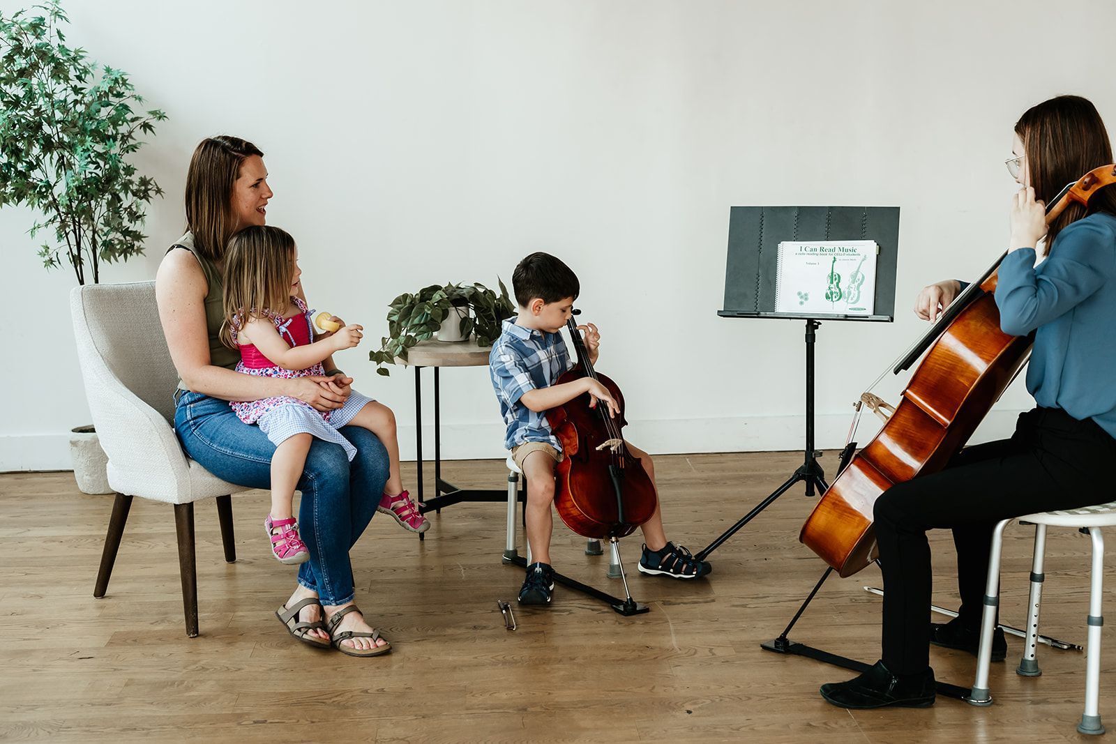 As the parent you attend weekly lessons, take notes, and guide daily practice at home. Daily practice becomes a special time of connection, where you and your child work together toward a shared goal. As the practice partner, you’re modeling the importance of showing up, sticking with challenges, and finding joy in the process of learning. This consistent, loving presence helps your child build confidence not just in music, but in themselves.